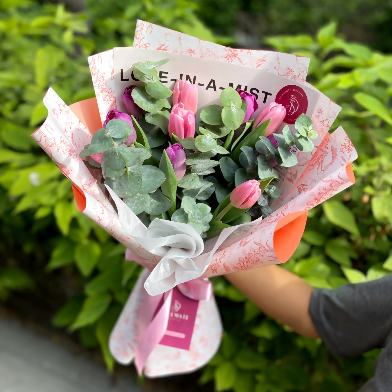 "Este San Valentín, regala más que flores: regala un gesto sincero de amor y amistad con un hermoso ramo floral." INCLUYE: 10 Tulipanes naturales Silver Dollar Papel decorativo para flores...